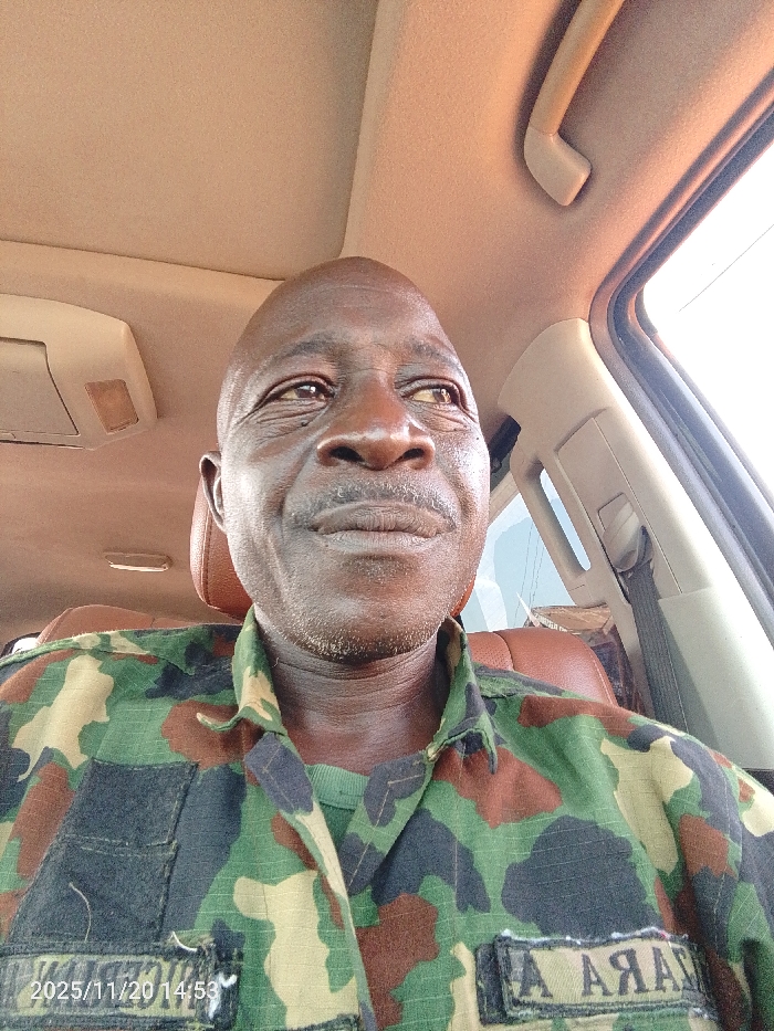 A medium close-up image depicts an adult male seated within the interior of a vehicle in Ayangba, Nigeria, on November 20, 2025, at 14:53