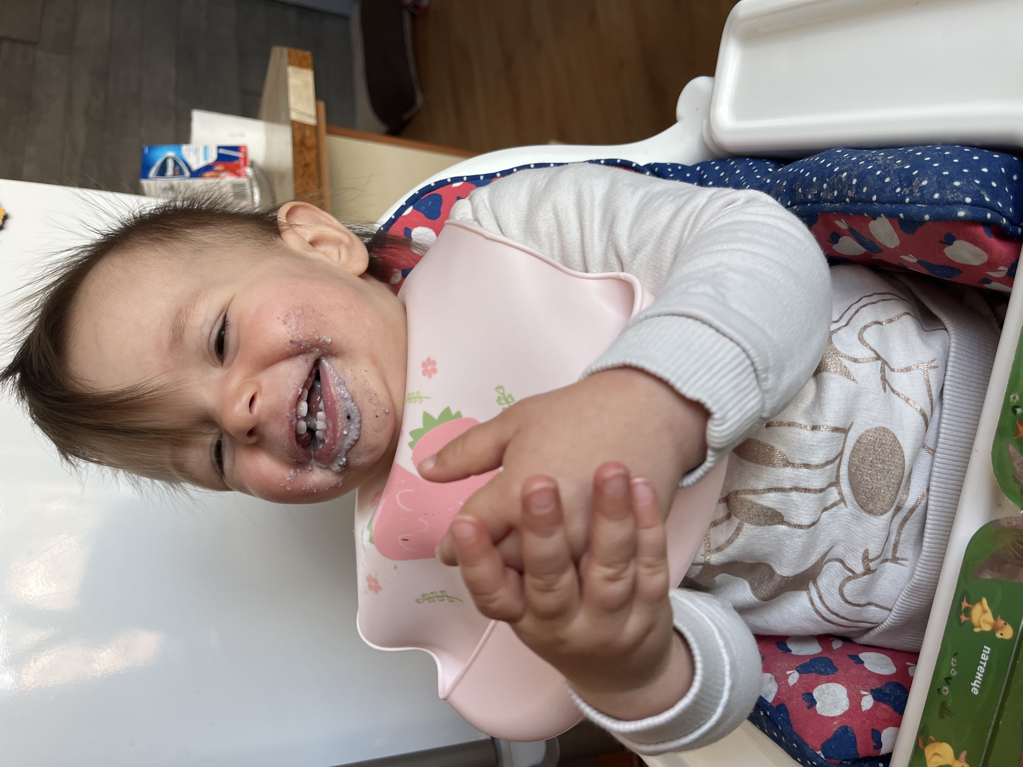 - "An infant is seated in a white high chair within what appears to be a residential kitchen or dining area in Pernik, Bulgaria" by FM-auqI32, licensed under CC BY 4.0