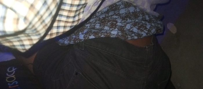 This image captures the lower torso and legs of an individual in a low-light indoor or shaded environment within Abuja, Nigeria