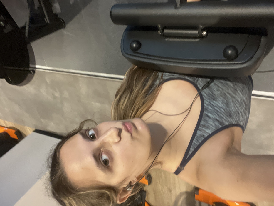 A single female individual, approximately 20-30 years old, is depicted in an indoor fitness facility, specifically a gym, located in Berlin, Germany