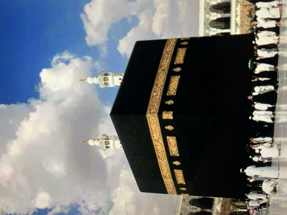 - "The image displays the Kaaba, a large, cuboid structure covered in black fabric (Kiswa) with a prominent golden calligraphic band, set on a vast, reflective, light-colored tiled plaza" by FM-q7EDs2, licensed under CC BY 4.0