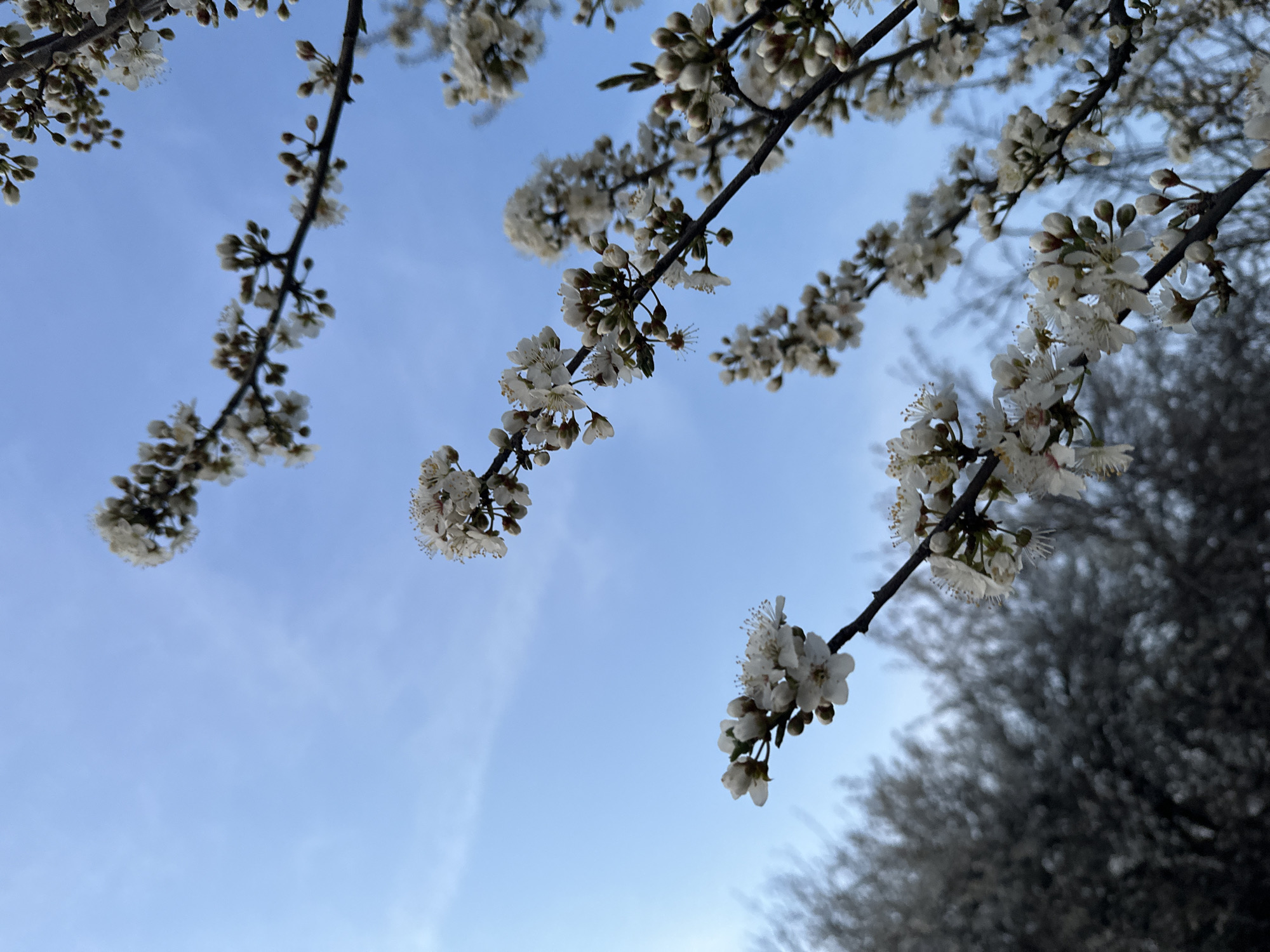 - "The image depicts a close-up view of flowering tree branches against a light blue sky in Malevo, Bulgaria" by FM-gsE632, licensed under CC BY 4.0