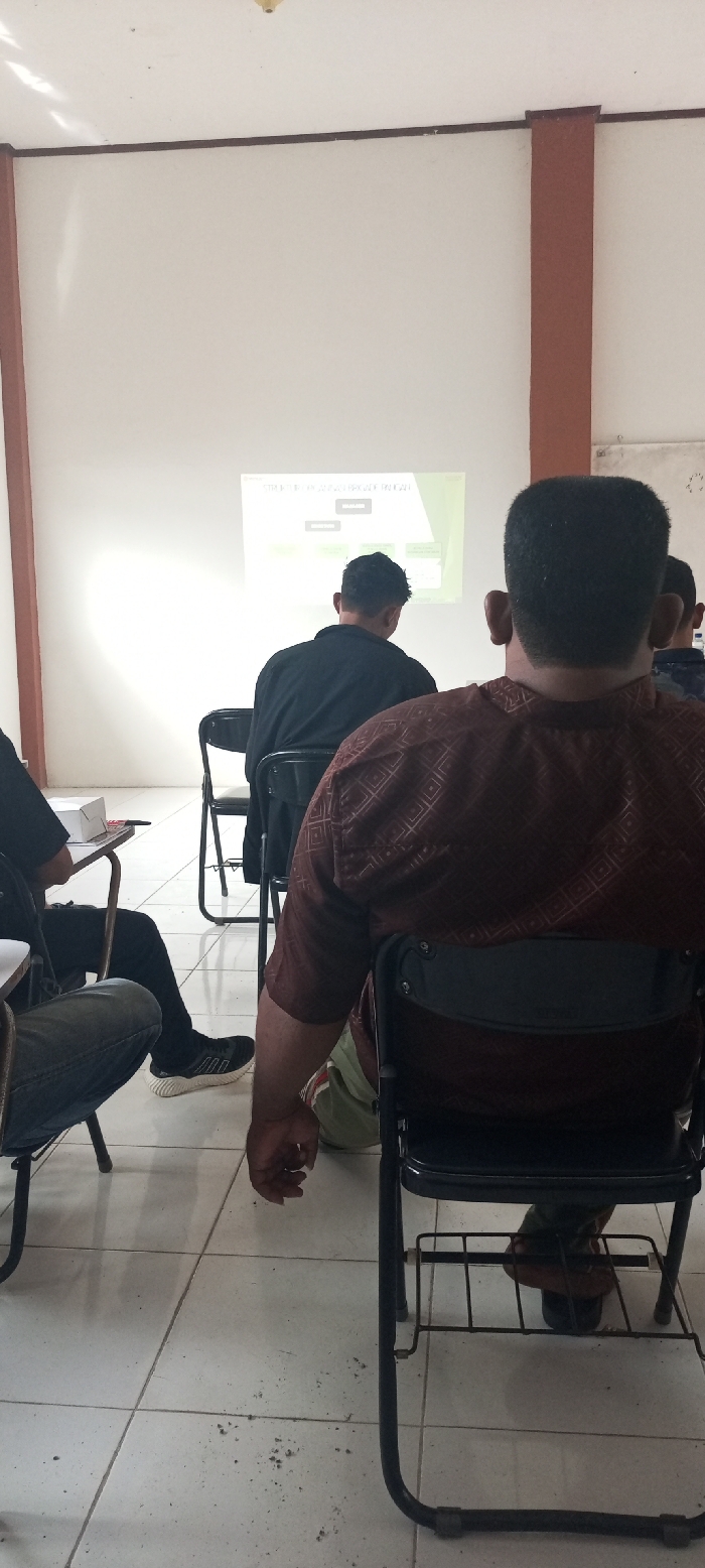 In a classroom setting, several individuals are seated, facing a projected screen displaying a diagram or presentation