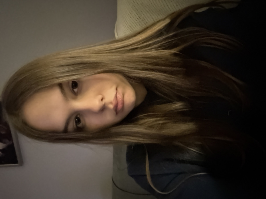 - "A young female with long, straight, light brown hair, wearing a dark hooded sweatshirt, is depicted in a dimly lit indoor portrait" by FM-hp5JW2, licensed under CC BY 4.0