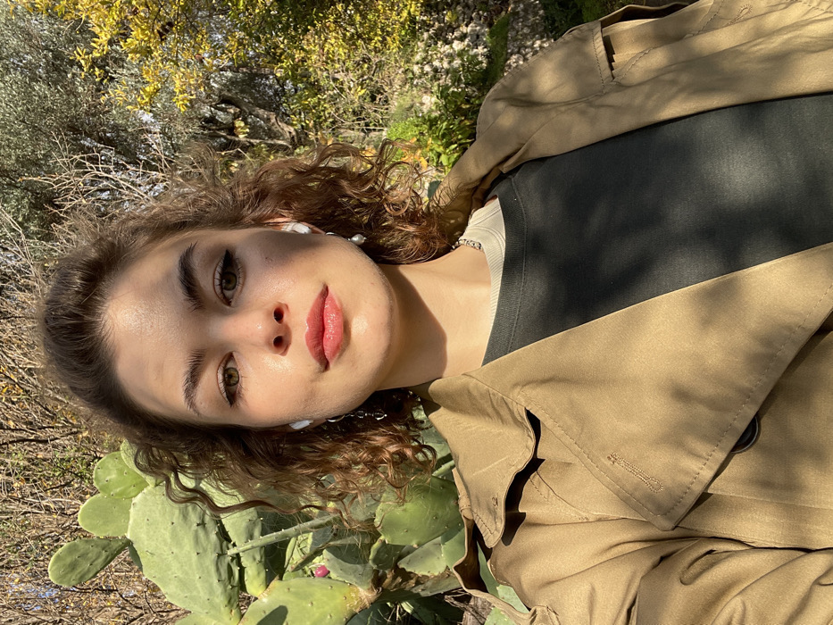 - "A young adult female with curly brown hair and green eyes is depicted in a sunlit outdoor selfie, positioned in Rafailovići, Montenegro" by FM-GgSpJ3, licensed under CC BY 4.0