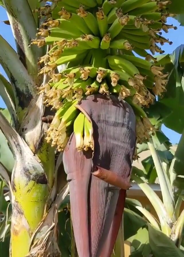banana tree in daylight against a blue sky