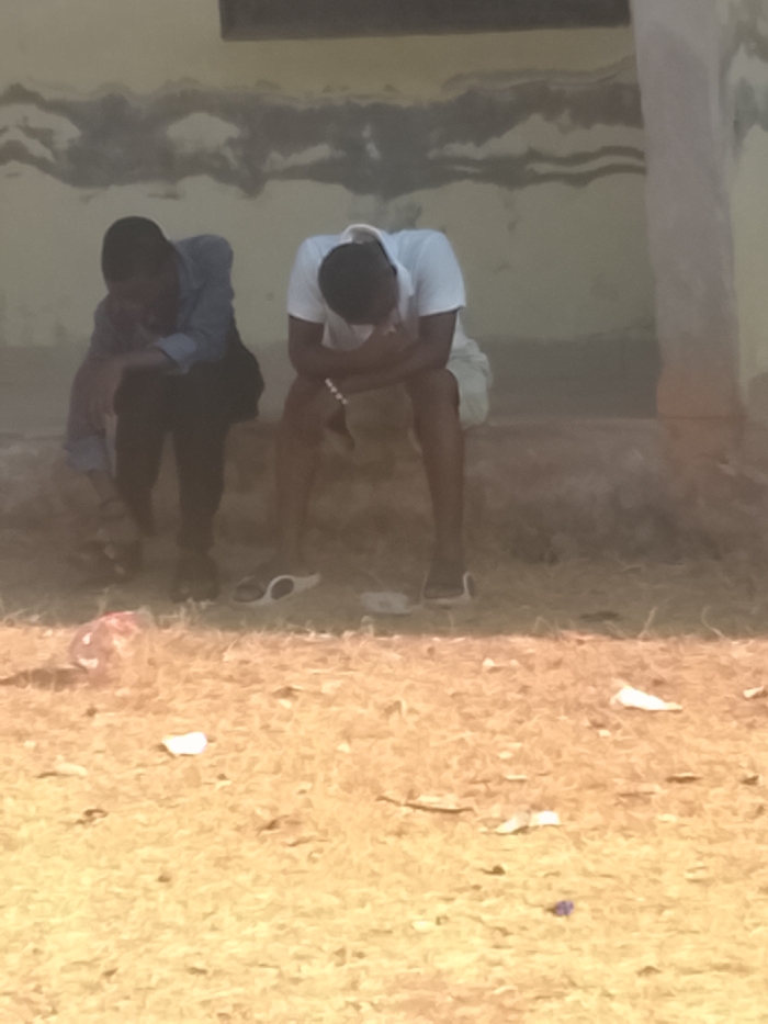 - "The image depicts two young males seated on a concrete ledge against a discolored, light-colored wall in Nassarawa Egon, Nigeria" by FM-Dzn6I3, licensed under CC BY 4.0