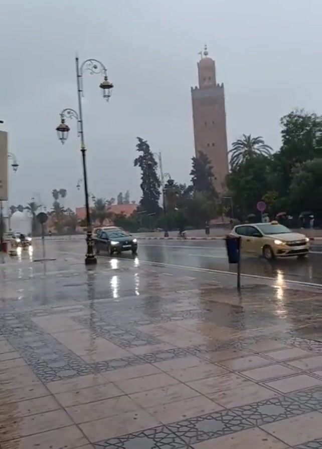 street scene in Marrakech on a rainy day