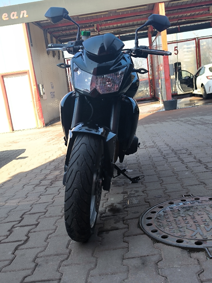 - "A black motorcycle is depicted head-on, parked on interlocking gray pavers at a self-service car wash facility in Sofia, Bulgaria" by FM-1Fau82, licensed under CC BY 4.0