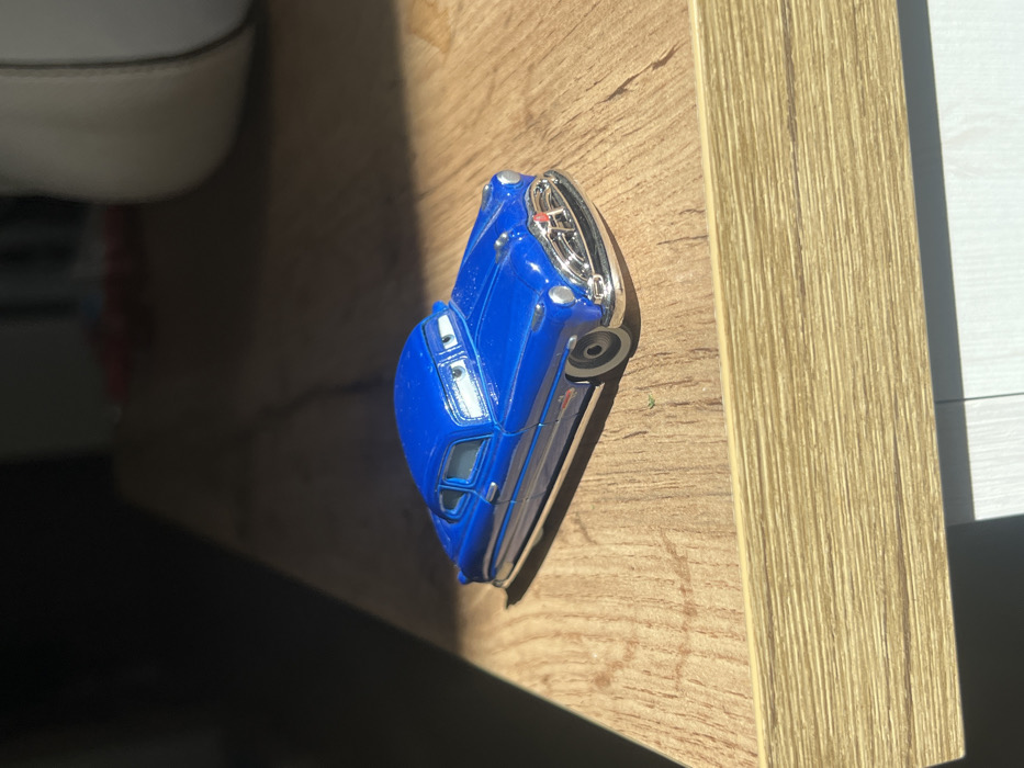 - "The image captures a blue die-cast toy car, resembling Doc Hudson from the 'Cars' franchise, positioned on a light-colored wooden surface" by FM-HLuiO2, licensed under CC BY 4.0
