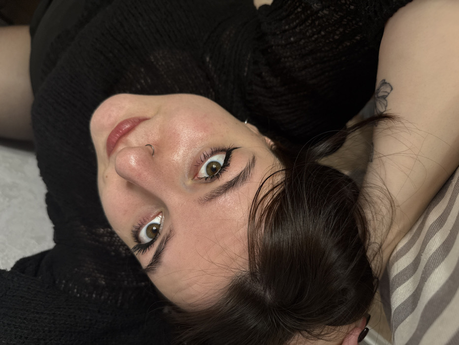 - "The image displays an adult female individual in an indoor setting, positioned horizontally and looking directly upward at the camera" by FM-VJm8n1, licensed under CC BY 4.0
