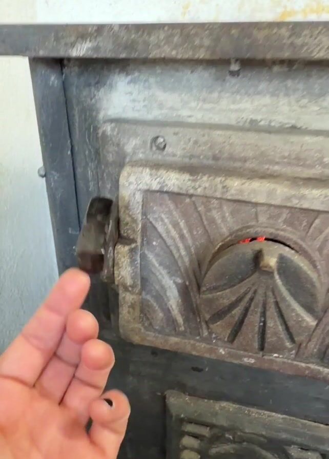 - "A hand with black nail polish pulls open a rusty metal door on a wood-burning stove to reveal a fire burning inside" by FM-qQznA2, licensed under CC BY 4.0
