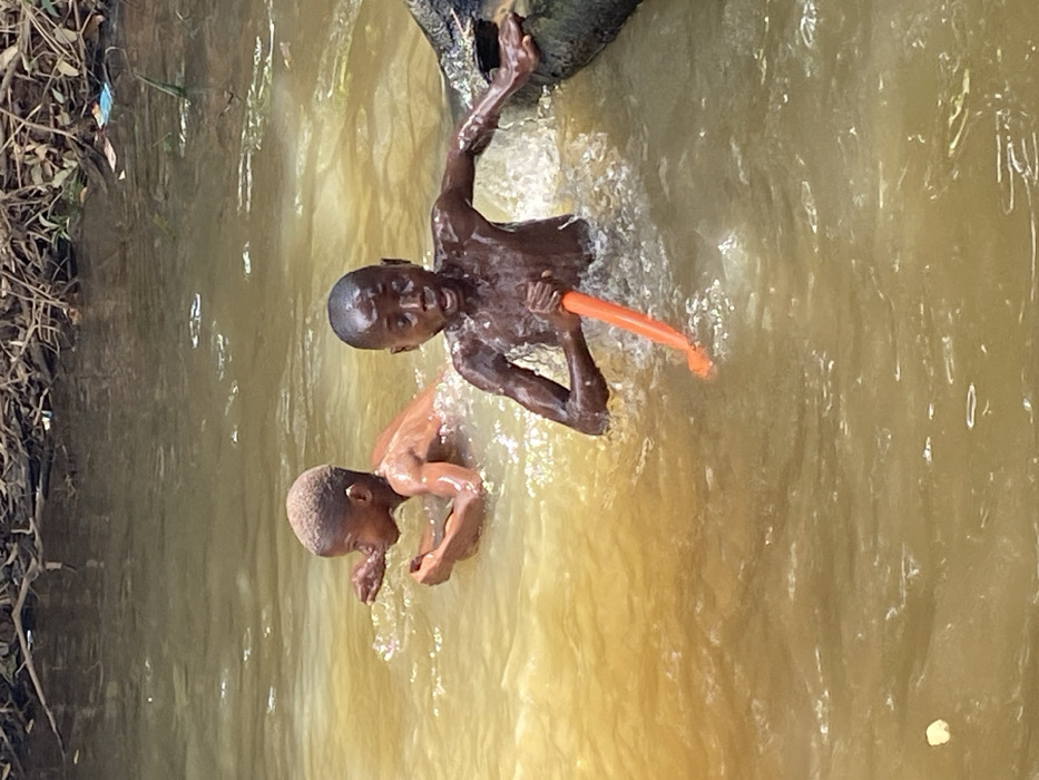 - "Two young males are partially submerged in turbid, light brown water, approximately chest-deep, in Ufueseni, Nigeria" by FM-6XMFv1, licensed under CC BY 4.0