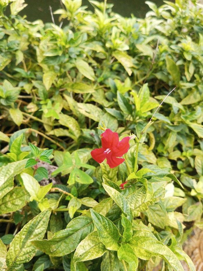 - "A single red flower, featuring four distinct petals and a pale central pistil/stamen extending upwards, is positioned slightly right of the image's vertical center" by FM-HcztE3, licensed under CC BY 4.0