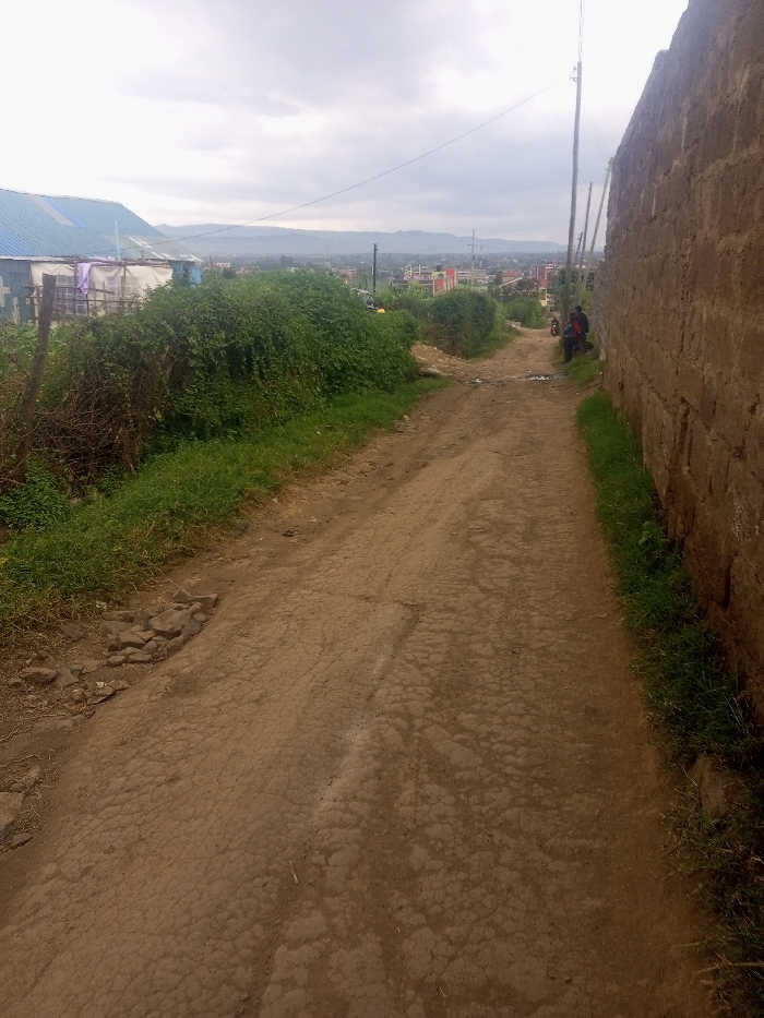 - "The image displays an unpaved dirt path descending through a semi-urban environment in Kiamaina ward, Kenya, under an overcast sky" by FM-mZ1eg2, licensed under CC BY 4.0