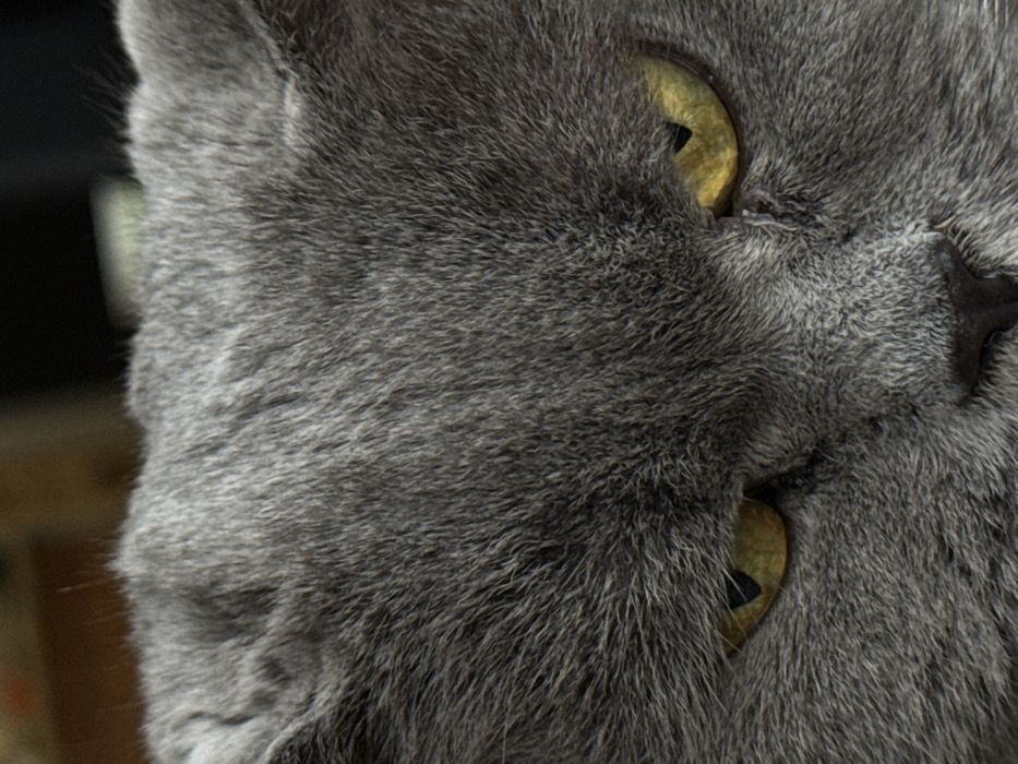 - "A close-up photograph depicts the face of a domestic cat, likely a British Shorthair, in an indoor environment within Rishon LeZion, Israel" by FM-XR4443, licensed under CC BY 4.0