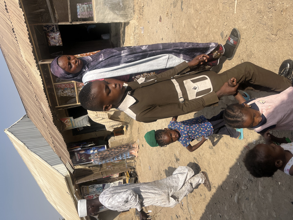 The scene is an unpaved outdoor area in Dzhidu, Nigeria, under clear daylight