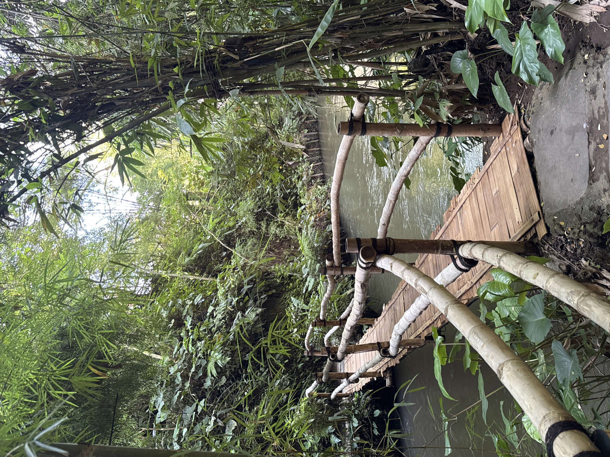 A bamboo bridge spans a waterway in Sayan, Indonesia