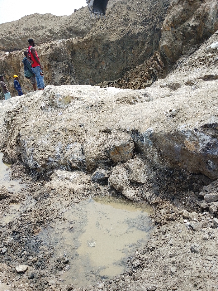This image depicts an active excavation or mining site in Otulu, Nigeria, under daylight conditions