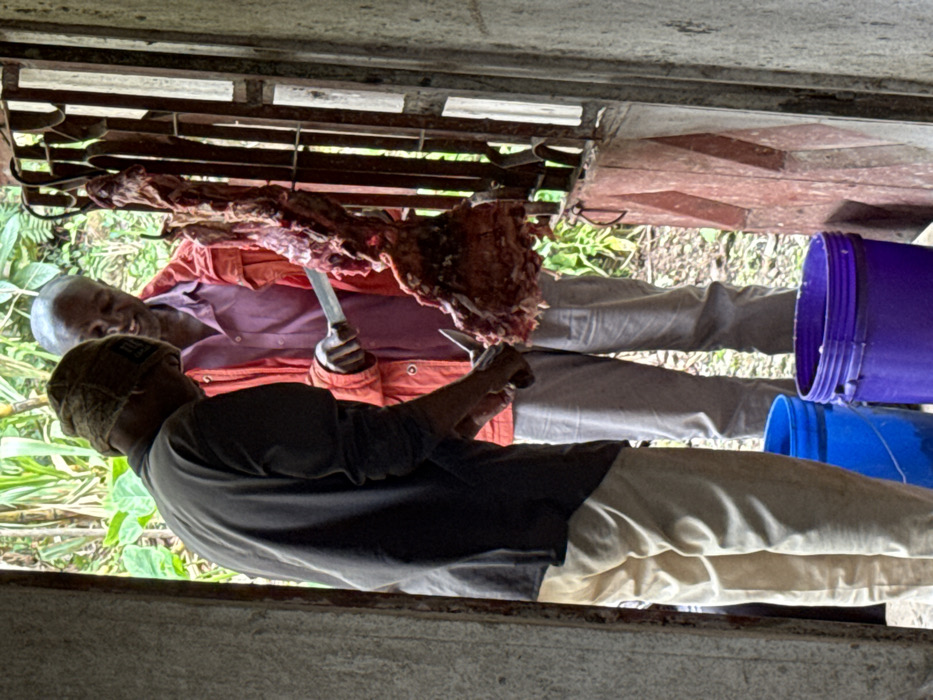 - "The scene, set at the doorway of a structure within Horombo Huts, Tanzania, depicts two adult males engaged in butchering a large animal carcass" by FM-Mlchq1, licensed under CC BY 4.0