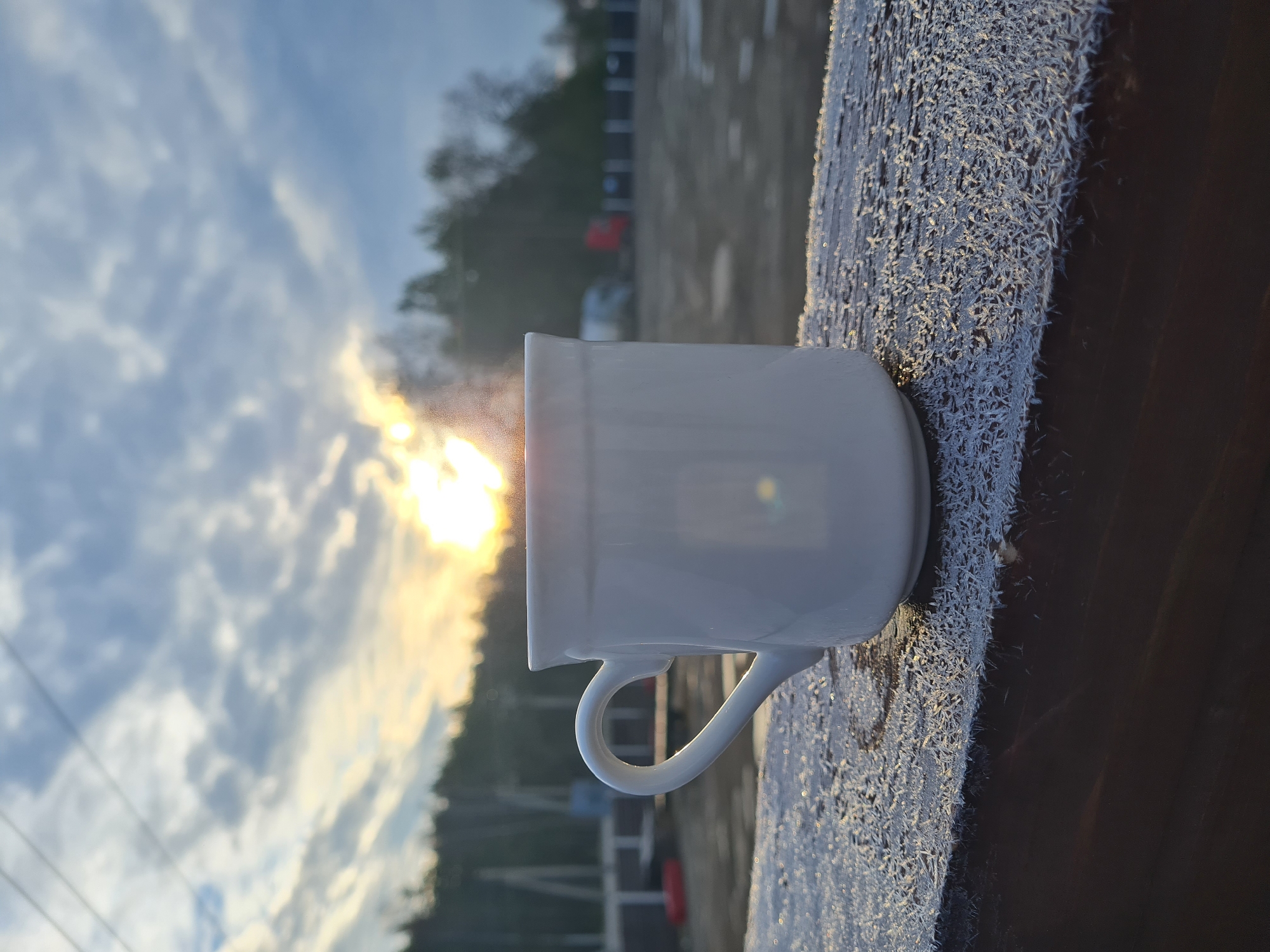 - "A white mug sits on a frost-covered wooden surface, possibly a railing" by FM-EqdoN2, licensed under CC BY 4.0