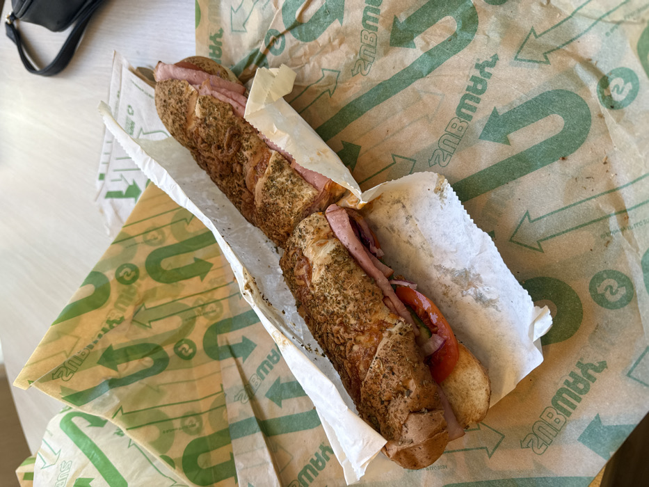 - "The image displays a partially unwrapped sub sandwich on a light-colored table within a Subway restaurant, situated in the city of East Suffolk, United Kingdom" by FM-Kliuo1, licensed under CC BY 4.0