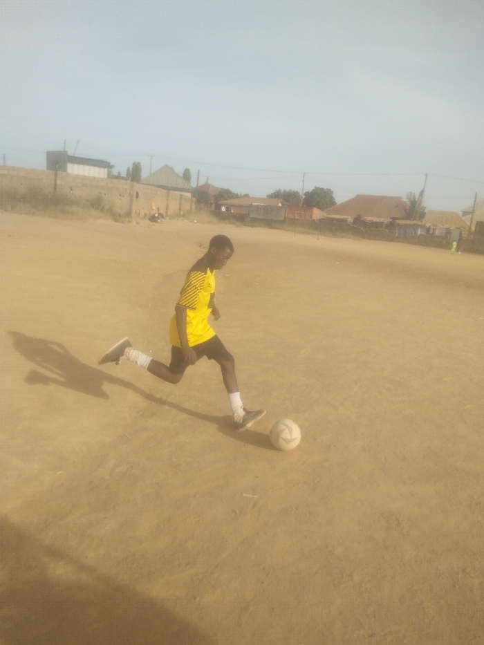 - "An image captured in Jos, Nigeria, depicts a young male engaged in playing soccer on a dry, unpaved reddish-brown dirt field" by FM-ywGBw1, licensed under CC BY 4.0