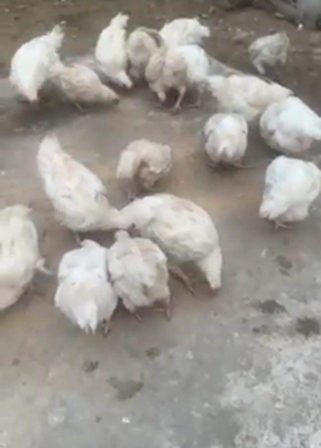 - "group of white chickens pecking at the ground on a concrete surface" by FM-AE2Hv2, licensed under CC BY 4.0