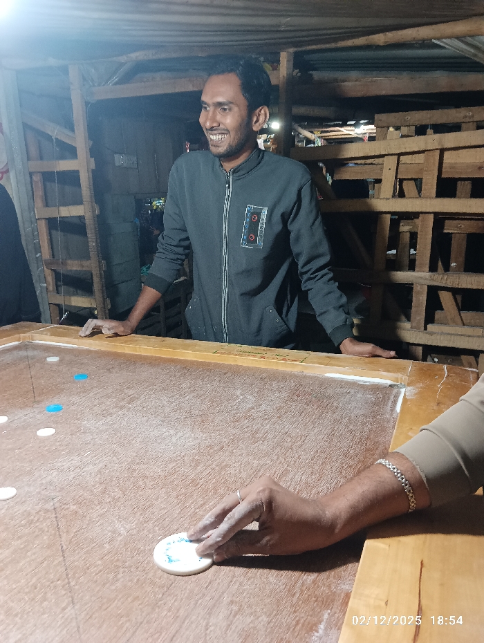 - "An indoor scene in Maliat, Bangladesh, depicts three individuals engaged in a carrom game on 2025-02-12 at 18:54" by FM-qwTJi2, licensed under CC BY 4.0