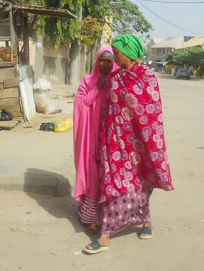 - "In the city of Babban Giji, Nigeria, two adult females are standing on an unpaved road during daylight hours" by FM-WfIwR2, licensed under CC BY 4.0