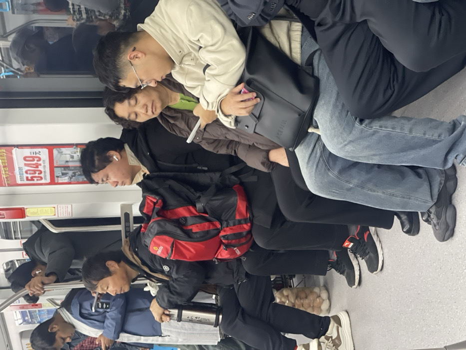 - "In a crowded subway car, several passengers are seated shoulder to shoulder" by FM-Yi7vn2, licensed under CC BY 4.0