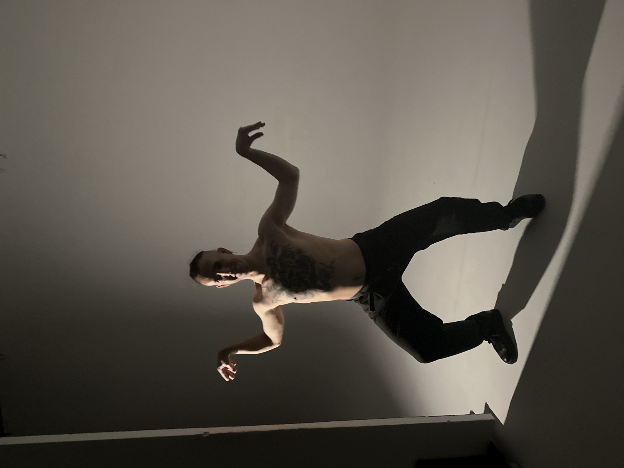 - "The image displays a single adult male subject performing a dynamic pose in an indoor photography studio environment" by FM-oAXMt2, licensed under CC BY 4.0