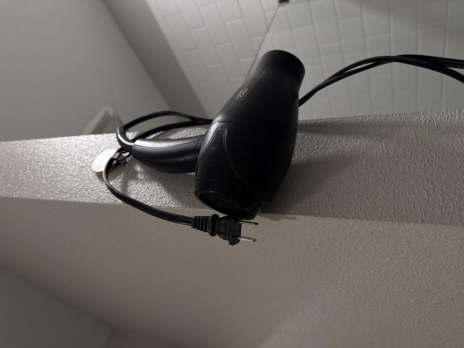 - "A black hair dryer rests on a textured, light gray surface" by FM-avfjN2, licensed under CC BY 4.0