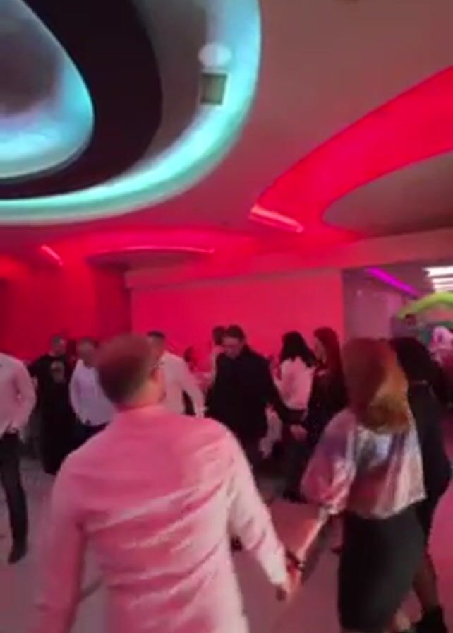 The video captures a group of people enjoying a circle dance at what appears to be a celebration or party