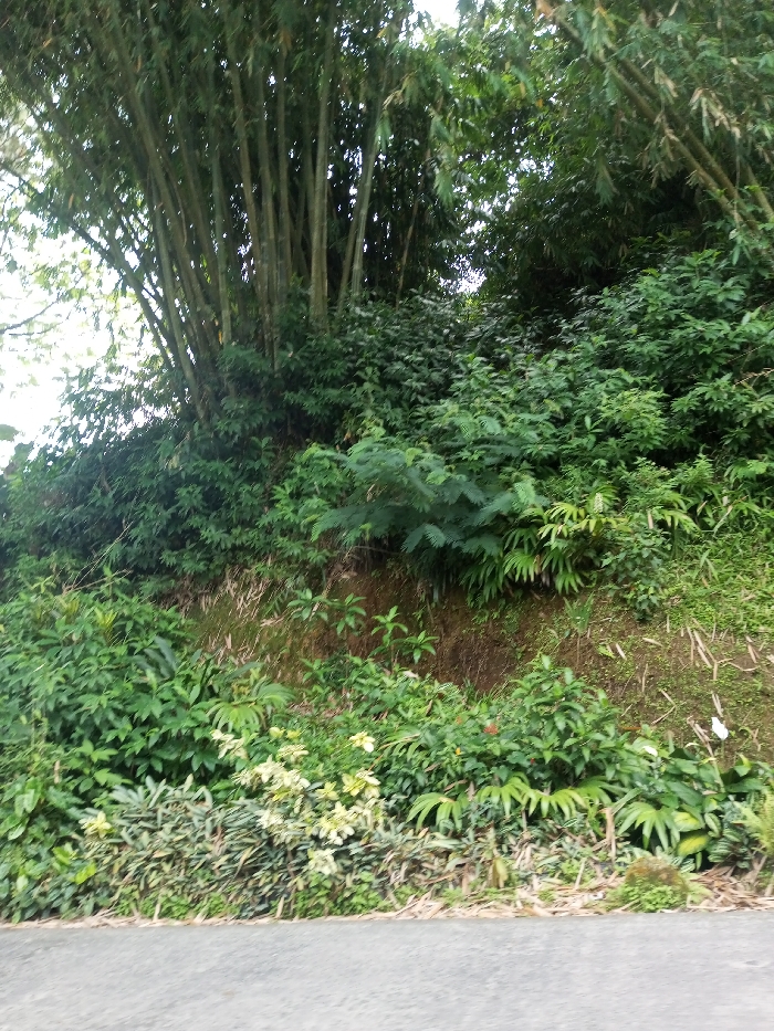 This image depicts a natural, verdant roadside embankment in Kandenuwara, Sri Lanka