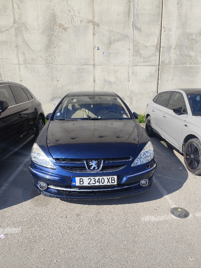 - "The image depicts a dark blue Peugeot 607 sedan positioned centrally, facing forward in an outdoor parking space" by FM-yK57l1, licensed under CC BY 4.0