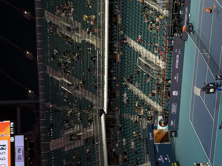 - "The image displays an elevated view of a professional tennis match occurring at night within Hard Rock Stadium in Miami Gardens, Florida, United States of America" by FM-kyXu53, licensed under CC BY 4.0