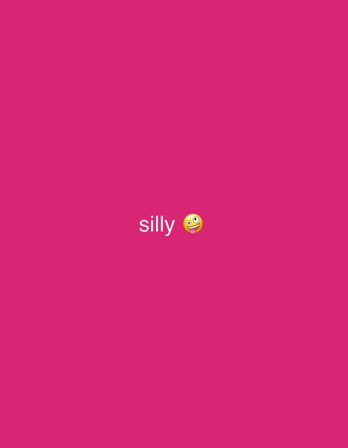The image displays a uniform, solid fuchsia background. Centered horizontally and slightly above the vertical midpoint, the word "silly" is rendered in white, lowercase sans-serif text. Immediately to the right of the word "silly" is a yellow emoji depicting a face with wide open eyes, raised eyebrows, and an open mouth with a tongue sticking out. There are no discernible people, subjects, objects, actions, interactions, or environmental features present. The scene does not depict any identifiable location in the city of Kunje, Montenegro, or any other physical location; it is a graphical composition on a plain color field.