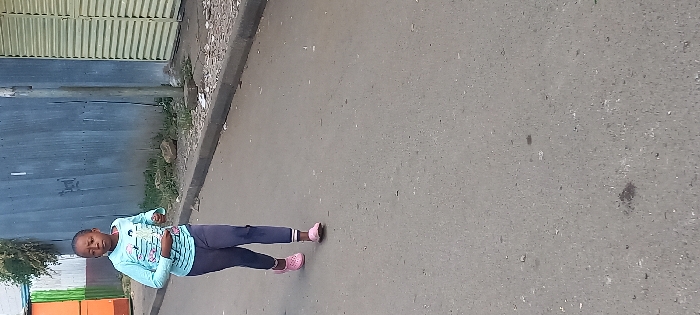 - "The image captures a young female, approximately 8-12 years old, in mid-stride on an asphalt road in an urban environment consistent with Nairobi, Kenya" by FM-4EAOj1, licensed under CC BY 4.0