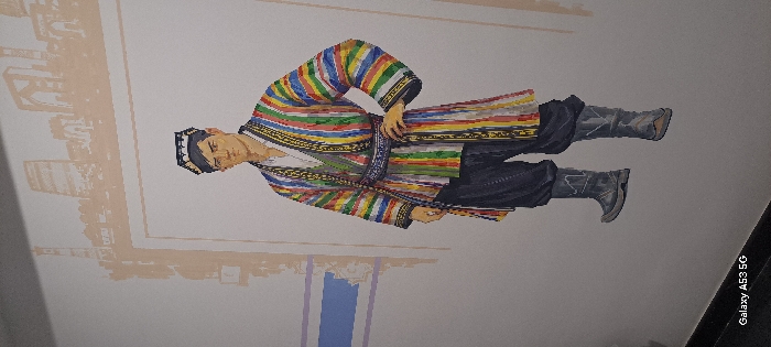 - "A full-body wall mural depicting a standing male figure adorns a light-colored indoor wall, likely located within the city of Angren, Uzbekistan, given the cultural context" by FM-GhYNt1, licensed under CC BY 4.0