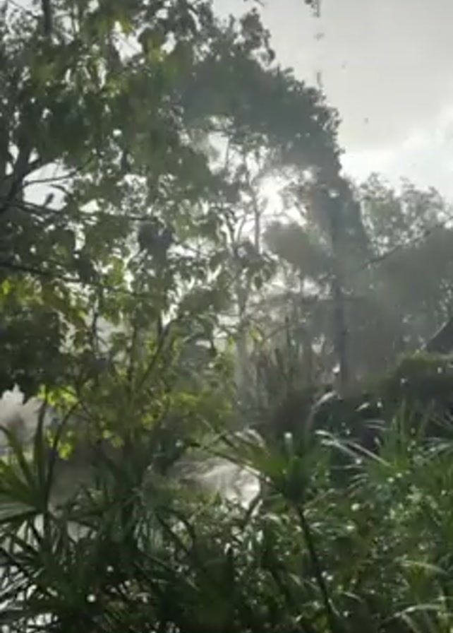 heavy rain falling on a lush, green garden