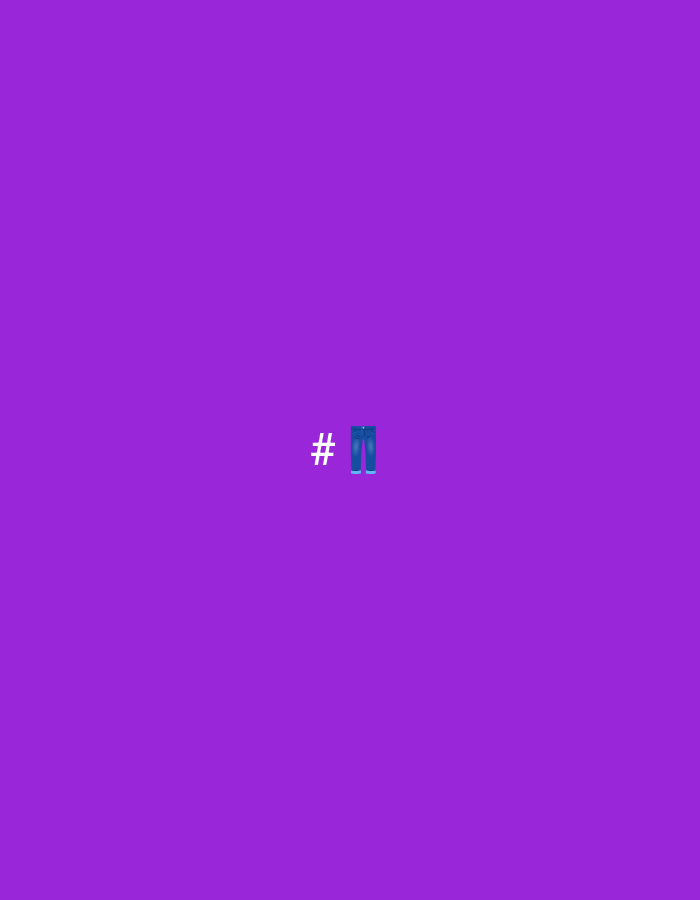 The image displays a digital composition, contextualized to the city of Hem, France. The scene features a uniform, solid purple background. Centrally positioned within this field, a white hashtag symbol (#) is depicted immediately to the left of a blue jeans emoji (👖). No people, explicit actions, interactions, or physical environmental elements are present; the scene is purely graphic.