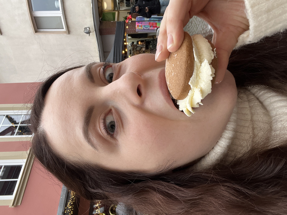 - "An image taken in Meisenheim, Germany, depicts a woman in the foreground biting into a cream-filled cookie sandwich" by FM-4GKkh1, licensed under CC BY 4.0