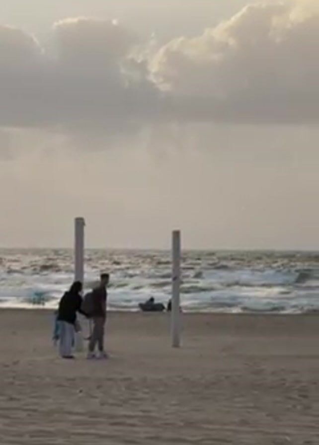 - "Two people walk on a sandy beach toward the ocean on an overcast day" by FM-AbshB3, licensed under CC BY 4.0