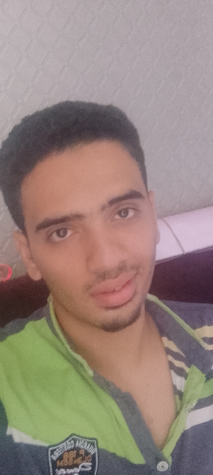 A close-up headshot of a young man looking at the camera. He is wearing a green and blue polo shirt with a patch on the left breast that reads "Amigos Anosaur". He is smiling slightly, with a faint goatee and a small bit of stubble on his chin. He is indoors in what appears to be a bedroom with a white headboard and a white wall behind him. The man's expression is neutral and he is likely taking a selfie. The image is taken from a cell phone camera, with the focus slightly off. The image does not appear to be taken in Pyramids Gardens, Egypt, as the coordinates provided are for a location in the city of Cairo.