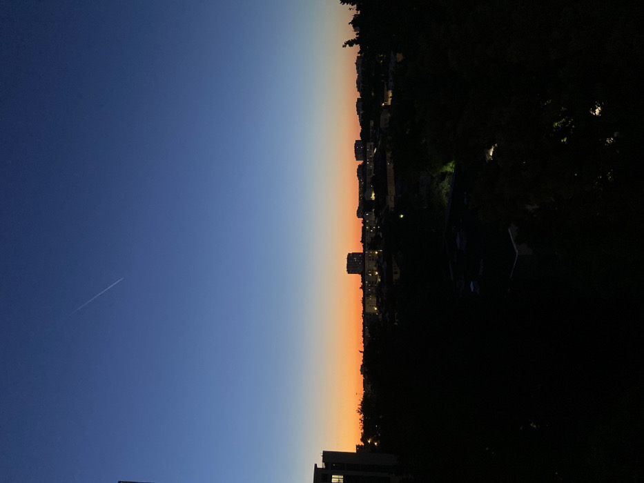 - "The image captures a twilight sky with a faint white contrail of an airplane cutting through the deep blue" by FM-wgi683, licensed under CC BY 4.0