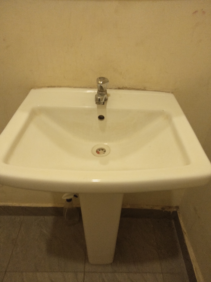 - "A white porcelain sink and pedestal stand centered against a light yellow wall" by FM-ag43H2, licensed under CC BY 4.0