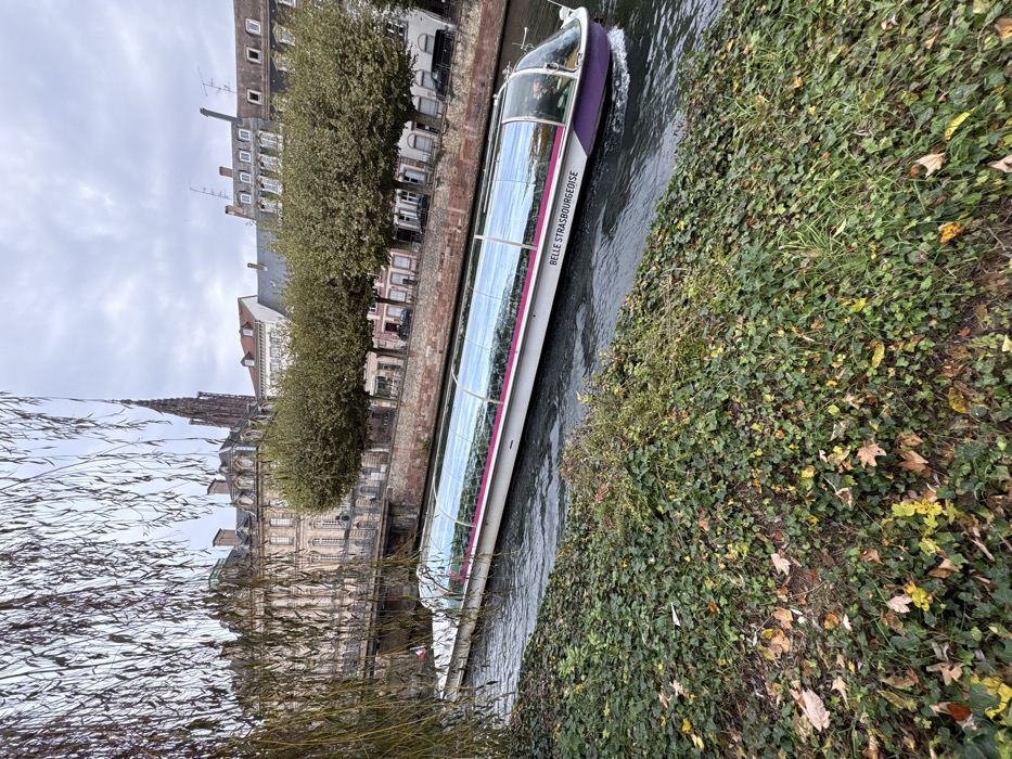 - "A long passenger tour boat, identified as "BELLE STRASBOURGEOISE" by text on its side, navigates the Ill River in Strasbourg, France" by FM-eJZnZ2, licensed under CC BY 4.0