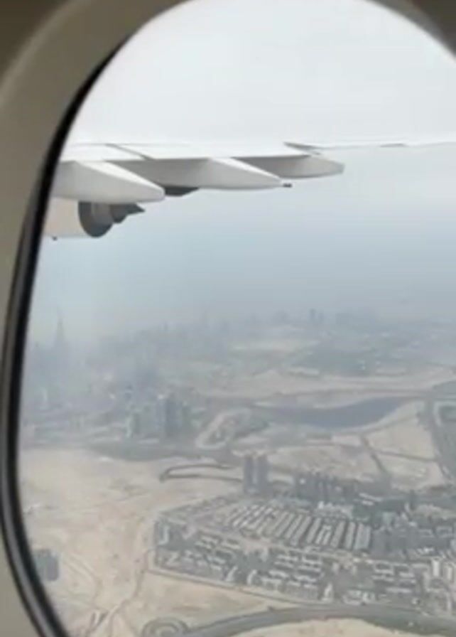 - "The view from an airplane window shows a city landscape partially obscured by haze" by FM-n7ZCd2, licensed under CC BY 4.0