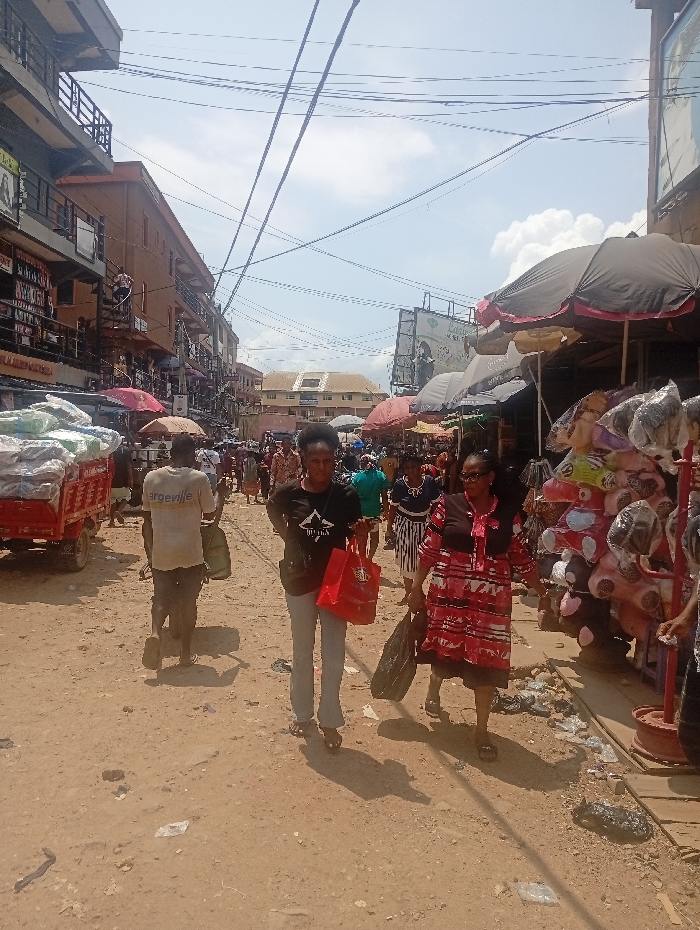 - "The image depicts a bustling commercial street in Fegge, Nigeria, under a partially cloudy sky" by FM-M3rrD3, licensed under CC BY 4.0